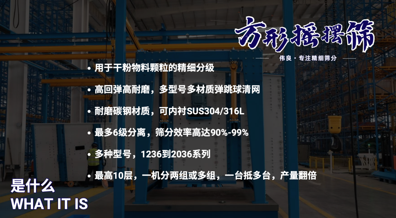 - 然后,經(jīng)過初步篩選的砂進(jìn)入偉良方形搖擺篩,普遍客戶會(huì)選擇大的機(jī)型2036型號(hào),6層/8層/或10層,它夠精確地篩選出符合要求的砂粒粒徑范圍,確保顆粒級(jí)配符合工程標(biāo)準(zhǔn)。