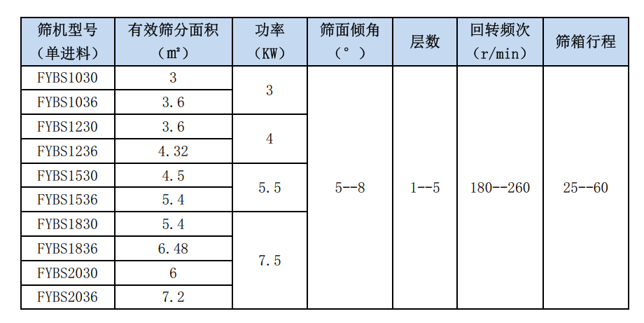FYBS方形搖擺篩的工作原理為:篩機(jī)啟動(dòng)之后,篩機(jī)搖動(dòng)體即篩箱在慣性力的作用下作前后往復(fù)運(yùn)動(dòng),篩箱帶動(dòng)篩面作周期性搖動(dòng),從而使篩面上的物料隨篩箱一同作定向跳躍式運(yùn)動(dòng)。期間,小于篩面孔徑的物料通過(guò)篩孔落到下層,成為篩下物,大于篩面孔徑的物料經(jīng)連續(xù)翻滾跳躍運(yùn)動(dòng)后,從排料口排出,完成篩分工作。